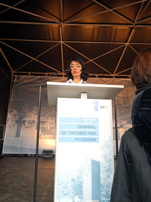 Am Mittwoch, 22. Oktober, fand die Gedenkveranstaltung zur Erinnerung an die Deportation der jüdischen Bürgerinnen und Bürger Pforzheims nach Gurs an der Gedenkstätte am ehemaligen Hauptgüterbahnhof, im Beisein der Landtagspräsidentin von Baden-Württemberg, Muhterem Aras, sowie des Vizepräsidenten des Zentralrats der Juden, statt. Im Mittelpunkt stand die feierliche Einweihung der im Auftrag der Jüdischen Gemeinde neu gestalteten Gedenkstätte auf dem neu benannten „Platz des 22. Oktober 1940". Mit dem von Architekt Peter W. Schmidt entworfenen Mahnmal wird an alle nach Gurs deportierten Kinder, Frauen und Männer aus Pforzheim namentlich erinnert.